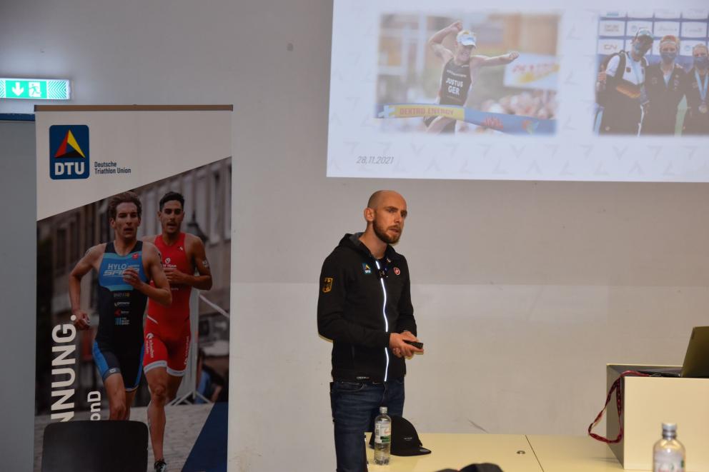 Daniel Unger, Bundesstützpunkttrainer in Saarbrücken, referierte über seine Erfahrungen von Höhentraining und Dan Lorang, ehemaliger Bundestrainer der DTU, gab unter der Überschrift „Zwischen Belastung und Knochenbrechen“ Einblicke in die Trainingsarbeit mit Jan Frodeno, Anne Haug oder Lucy Charles-Barclay. Den DTU-Abschlussvortrag hielt Professor Harald Lange. Er sprach über die Wichtigkeit exzellenter Trainer*innen für die Entfaltung des Potentials von Athlet*innen.