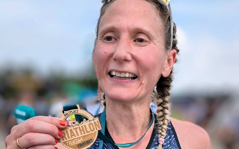 „Ich saß da und habe über das Aufgeben nachgedacht“, sagt Birte über ihren Start beim Regensburger Triathlon 2023 über die Olympische Distanz.