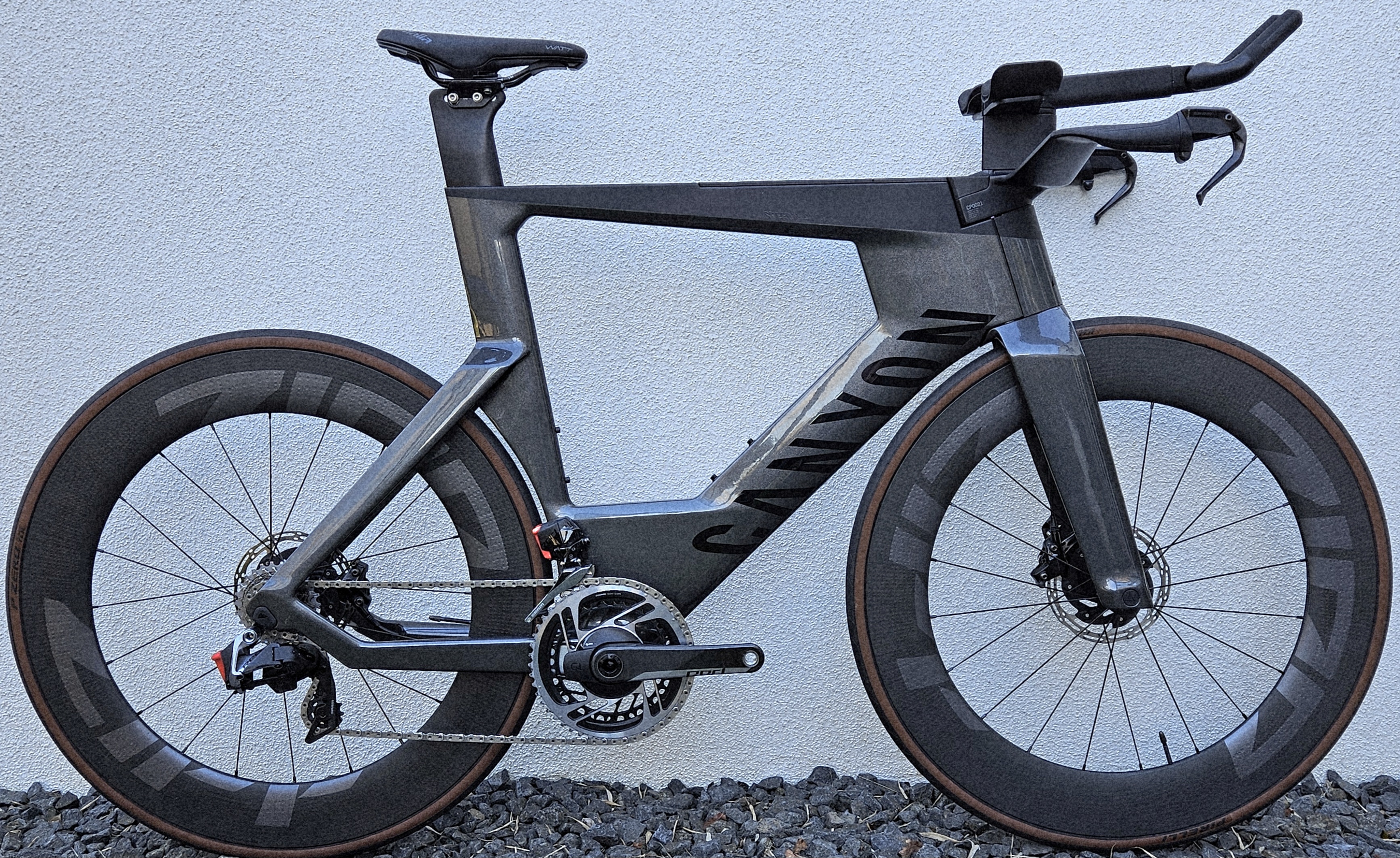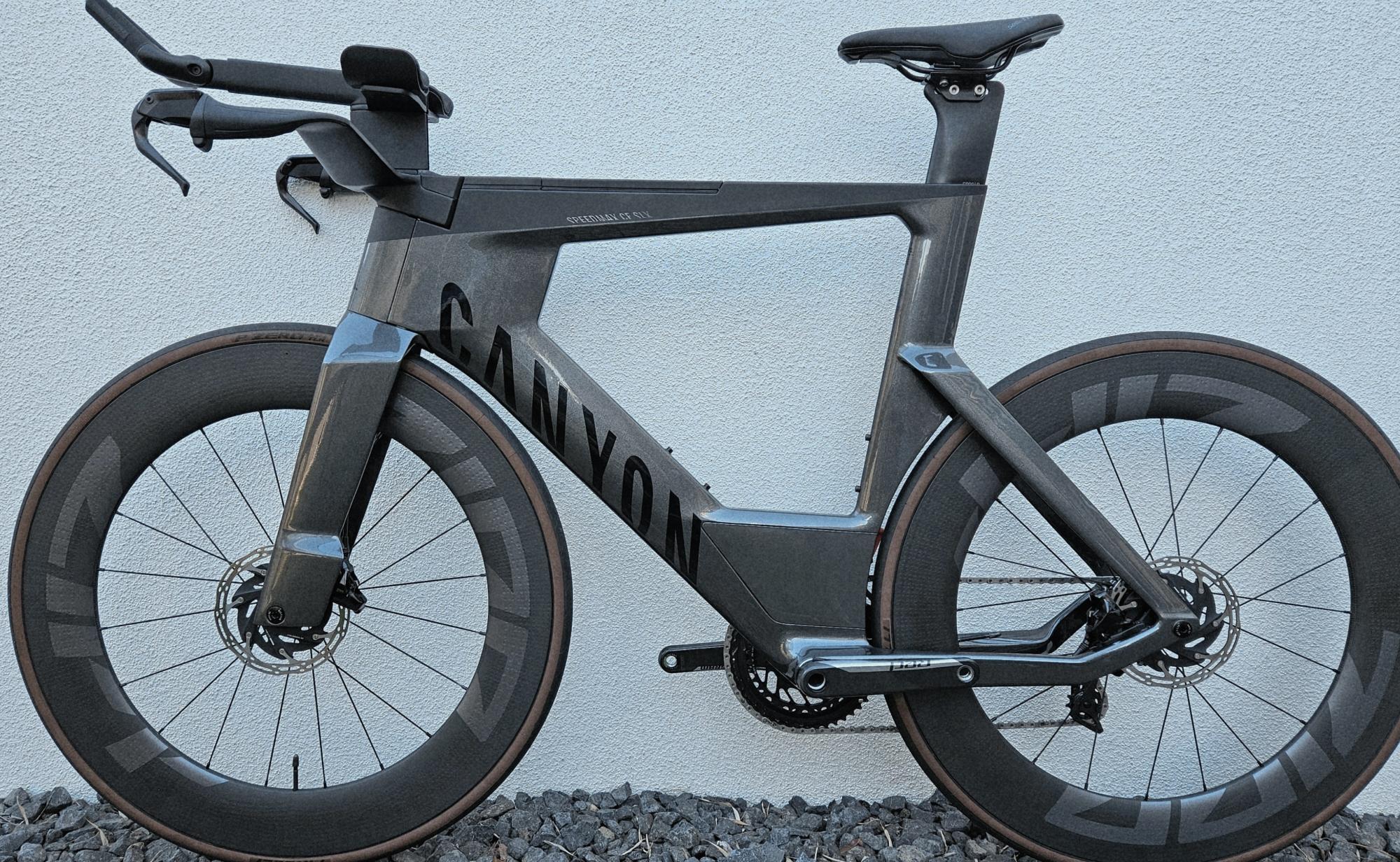 Verkaufe umständehalber mein neuwertiges CANYON Speedmax customized in Gr. L mit Ausstattung der Spitzenklasse in der Farbe Pearl Grey.