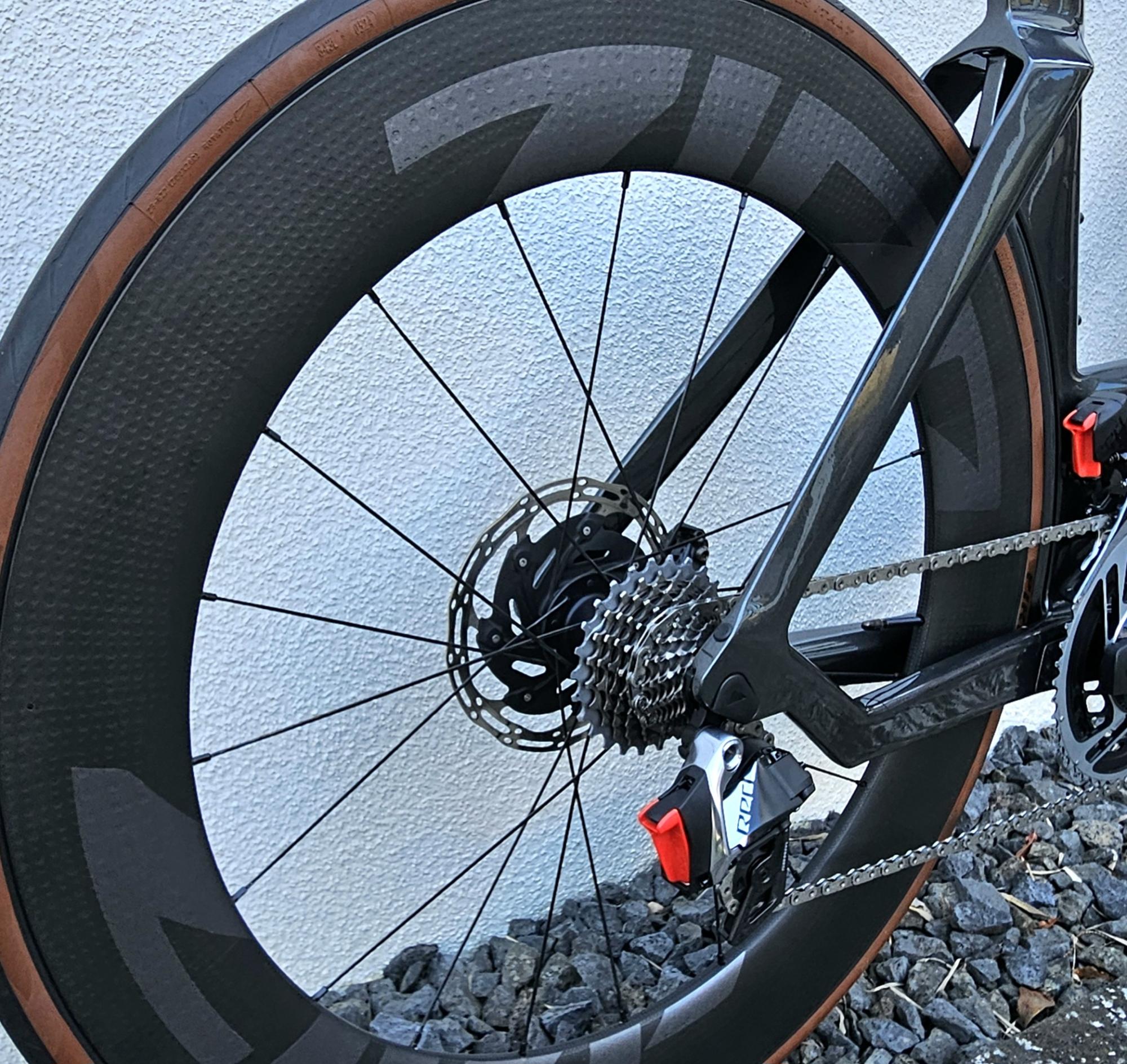 - LAUFRAD HINTEN: ZIPP 808 Firecrest Hookless, XDR, Bremsaufnahme Center Lock, Felgenhöhe 82 mm, 23 mm Innenbreite, Nabe ZIPP ZR1 DB, Speichen Sapim CX Sprint (J-Bend), Gewicht lt. Hersteller 883 g