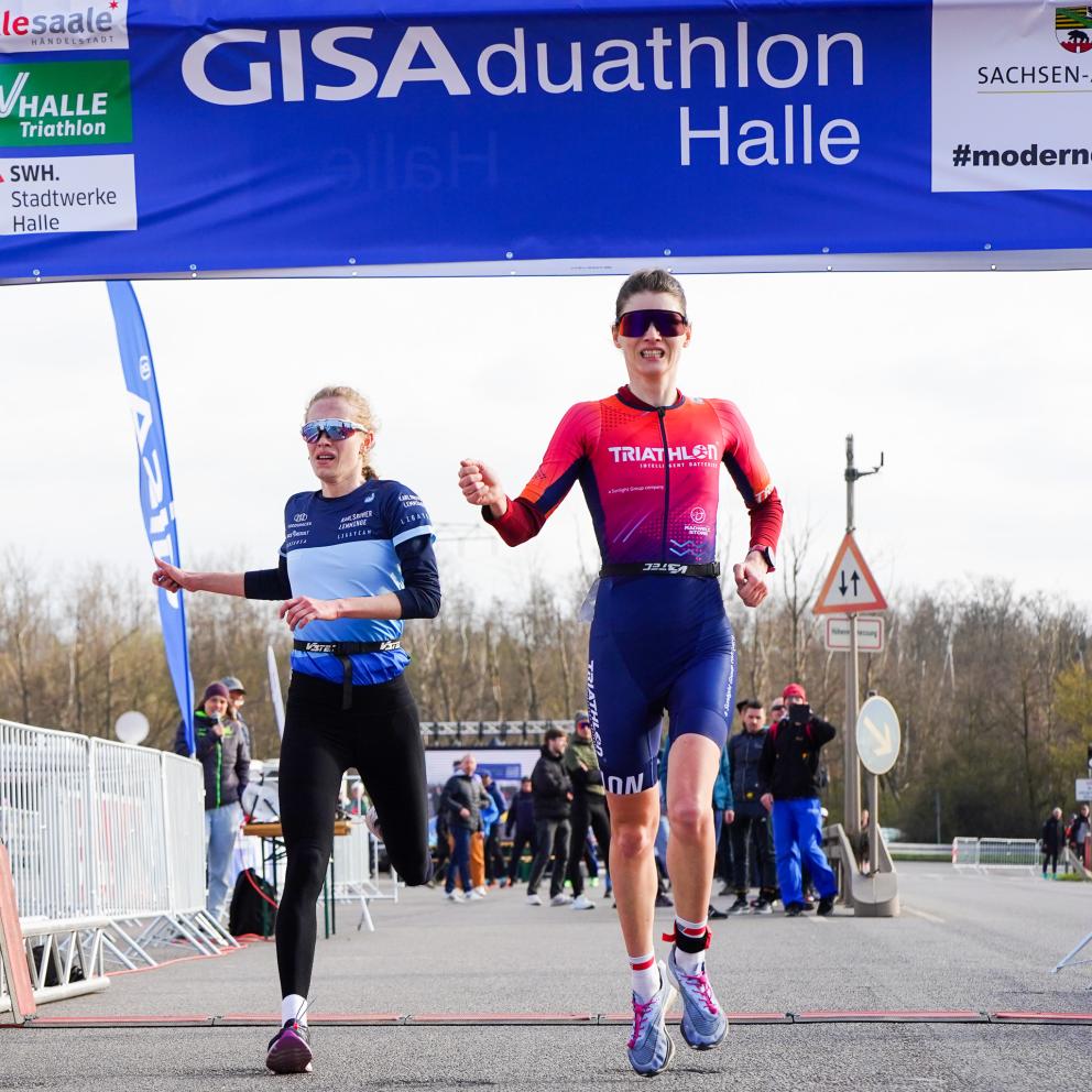 Lokalmatadorin Ulbrich (SV Halle Triathlon) setzte sich in einem dramatischen Fotofinish zweier Altersklassen-25-Athletinnen gegen Titelverteidigerin Valerie Moser (Karlsruher Lemminge) durch. Ulbrich überquerte die Ziellinie nach 1:10:53 Stunden. Moser folgte nur drei Zehntel später (1:10:54). Als Gesamtdritte wie auch Dritte im AK-25-Klassement bewältigte Vanessa Aberham (TSG 08 Roth) die 5 Kilometer Laufen, 21 Kilometer Radfahren und 3 Kilometer Laufen (1:13:13).