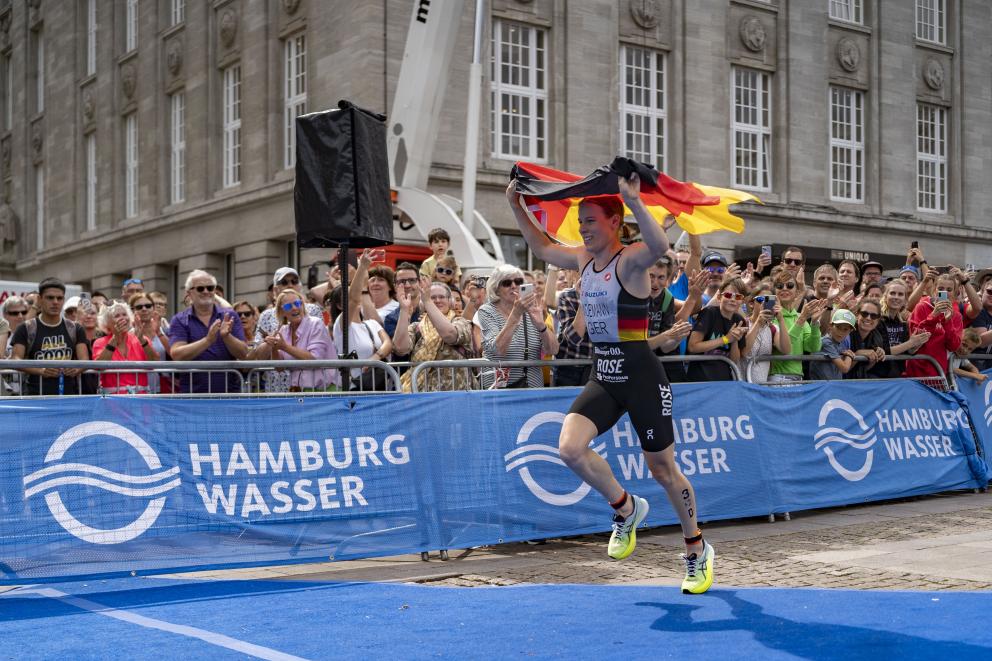 Wie bei der Weltmeisterschaft in Hamburg 2023. Laura Lindemann wird trägt die deutsche Fahne.