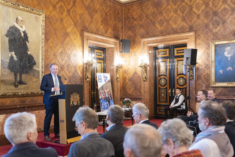 Hamburgs Innen- und Sportsenator Andy Grote schlug in seiner Eröffnungsrede bereits die Brücke ins nächste Jahr, wenn vom 13. bis 16. Juli 2023 die zweitgrößte Stadt Deutschlands mit der Ausrichtung der World Triathlon Sprint & Relay Championships für Elite, Breitensport und Nachwuchs wieder zum Nabel der Triathlonwelt wird: „Hamburg und der Triathlon - das ist eine ganz besondere Verbindung. Gemeinsam haben wir in den vergangenen Jahren viel für den Triathlonsport und für unsere Stadt erreicht. Hamburg ist Schaufenster und Labor des internationalen Triathlons, einer der führenden Standorte weltweit. Wir waren die erste Stadt, die Triathlon mitten ins Zentrum einer Millionenmetropole geholt hat und auch die Mixed-Team-Relay hat hier das Licht der Triathlon-WM erblickt und sich bis zur Olympiareife entwickelt. Auf diese Erfolgsgeschichte sind wir stolz und wollen sie mit der Triathlon-WM im nächsten Jahr gemeinsam fortschreiben.“